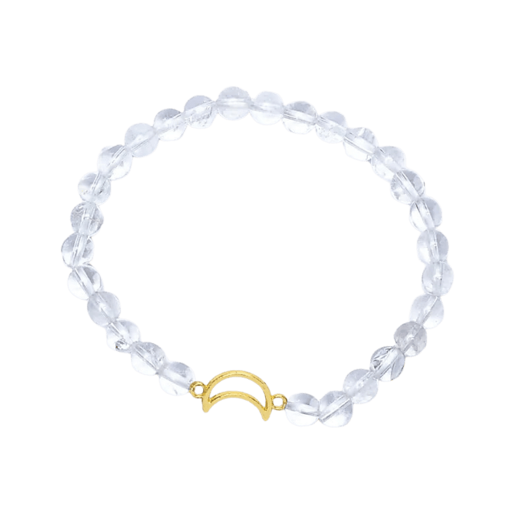Armbåndets design er både klassisk og meningsfuldt. De klare perler giver et elegant og tidløst look, mens halvmånevedhænget tilføjer en subtil symbolik om intuition, cyklusser og fornyelse. Det er et smykke, der både kan bruges som daglig energikilde og som et elegant tilbehør til særlige lejligheder.