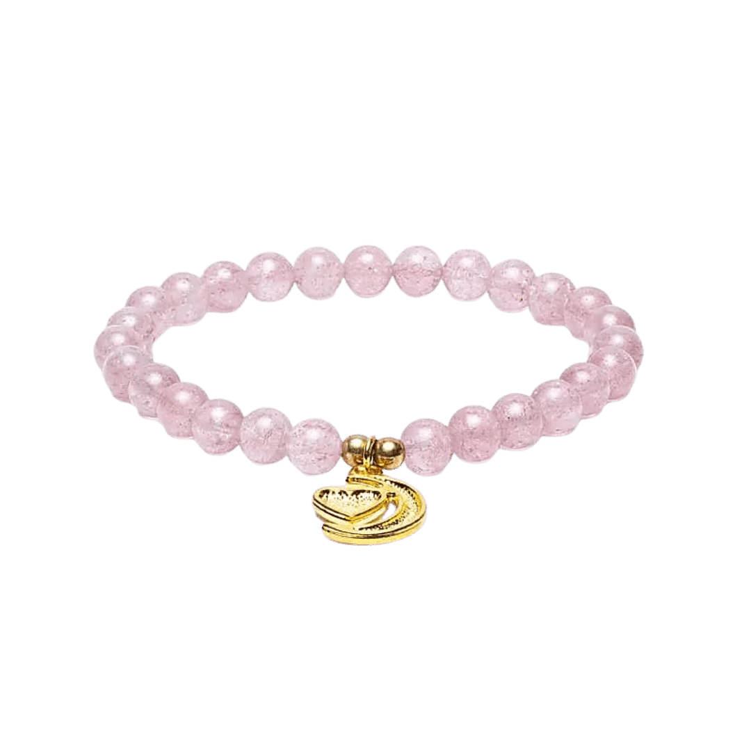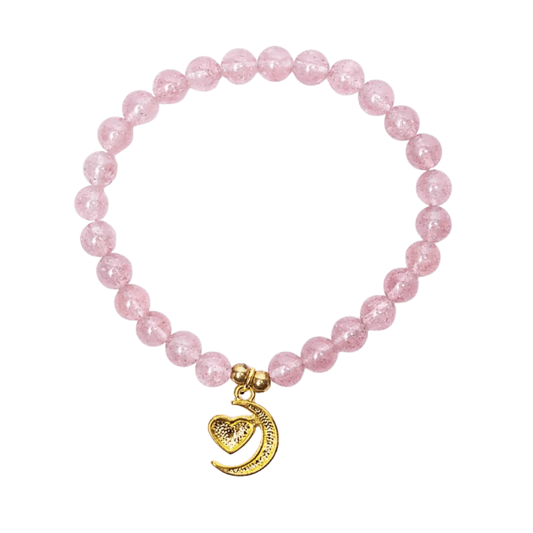 Jordbær Kvarts Armbånd med Hjerte- og Månevedhæng – Kærlighed og Indre Ro
