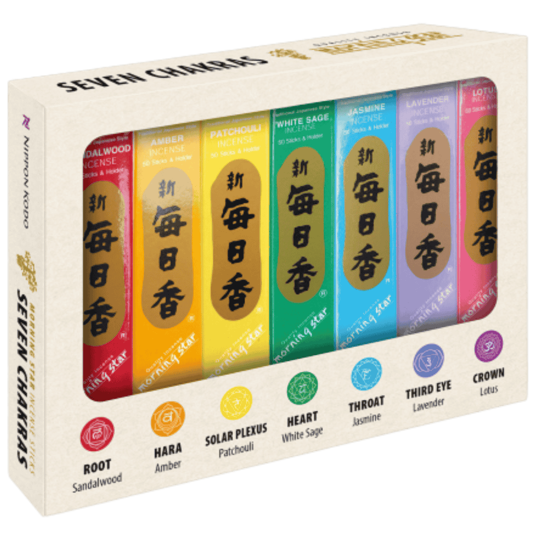 Skab harmoni, indre ro og fornyet energi med denne smukke gaveæske, der indeholder 7 æsker af den populære japanske Morning Star røgelse. Hver duft repræsenterer et af kroppens syv chakraer og støtter dig i at skabe balance mellem krop, sind og ånd. Morning Star er kendt for sin høje kvalitet, rene dufte og lange brændetid, og har i årtier været et foretrukket valg for både meditation, yoga og afslapning.