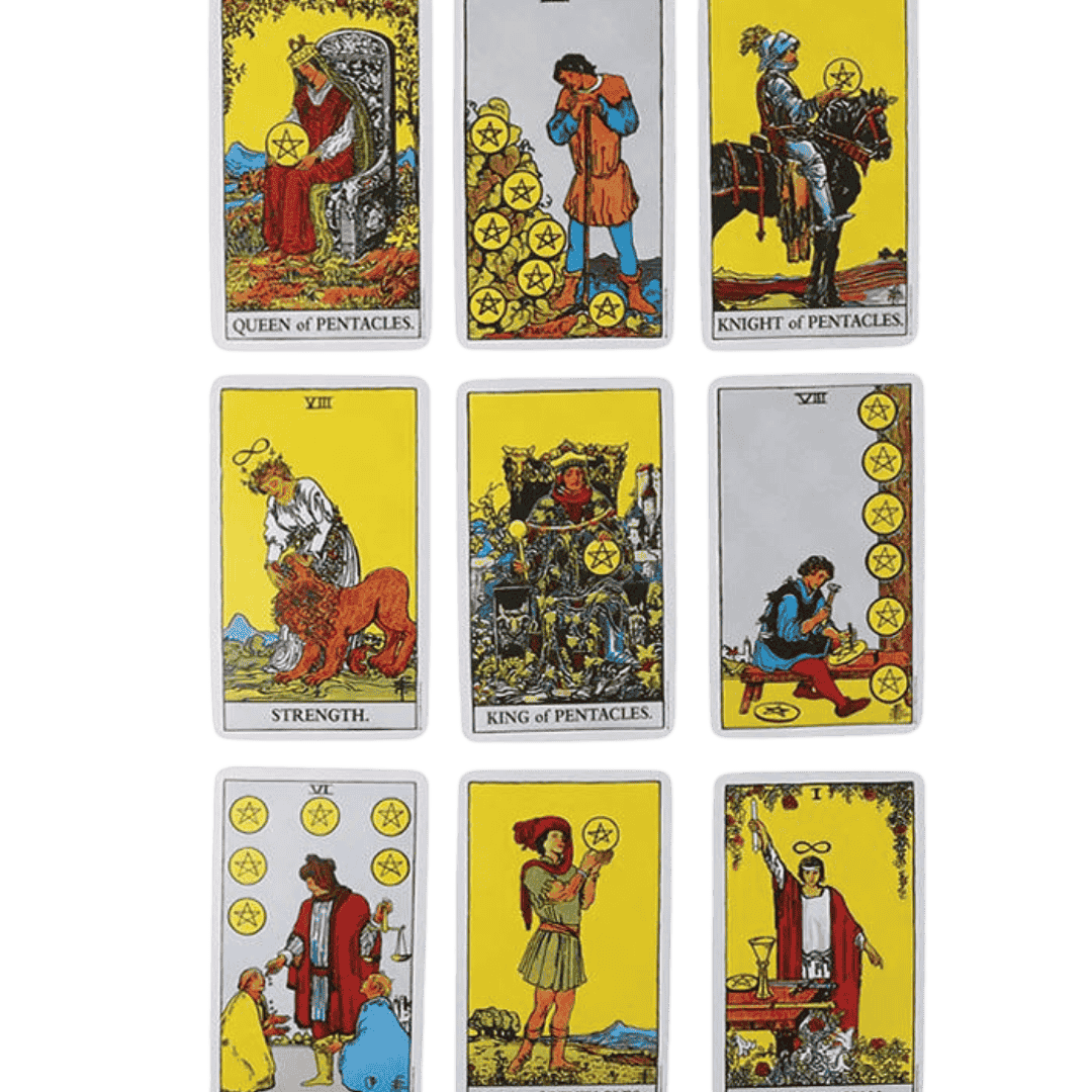 Det, der virkelig adskilte Rider-Waite-tarottet fra tidligere tarotsystemer, var den revolutionerende beslutning om at illustrere samtlige kort i den lille arkana med fulde scener frem for blot symboler. Under Arthur Edward Waites omhyggelige vejledning skabte kunstneren Pamela Colman Smith – ofte overset i tarothistorien – levende billeder, der formidler kortenes betydning gennem fortællende scener og rig symbolik. Hendes kunstneriske sensibilitet og intuitive forståelse af det esoteriske gav liv til Waites visioner på en måde, der gjorde tarottolkning tilgængelig for almindelige mennesker. Hver illustration er omhyggeligt komponeret med symbolske elementer, farver og kompositioner, der taler direkte til både det bevidste og det ubevidste sind, hvilket gør dette dæk til et ekstraordinært redskab for både begyndere og erfarne tarotlæsere.
